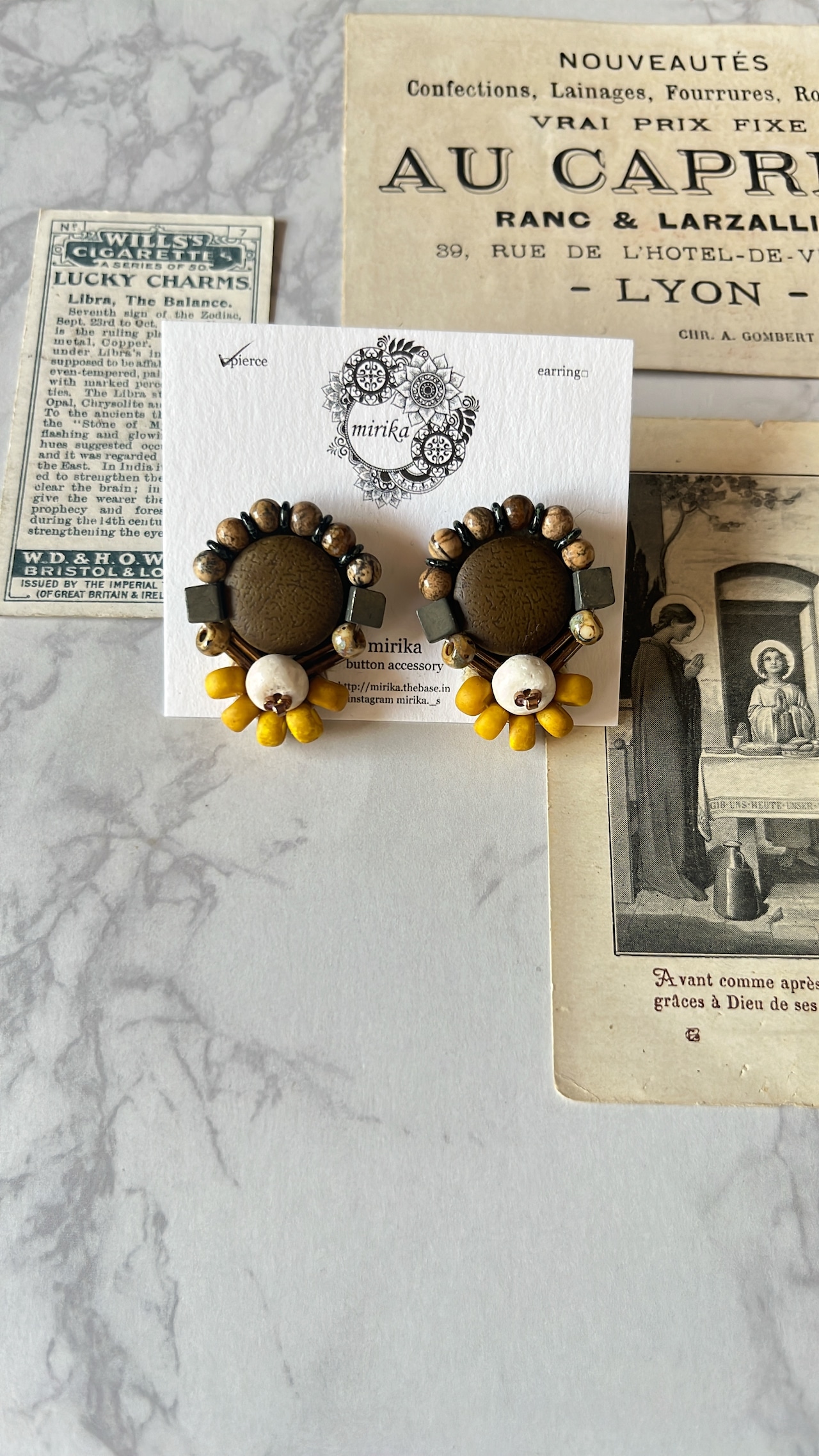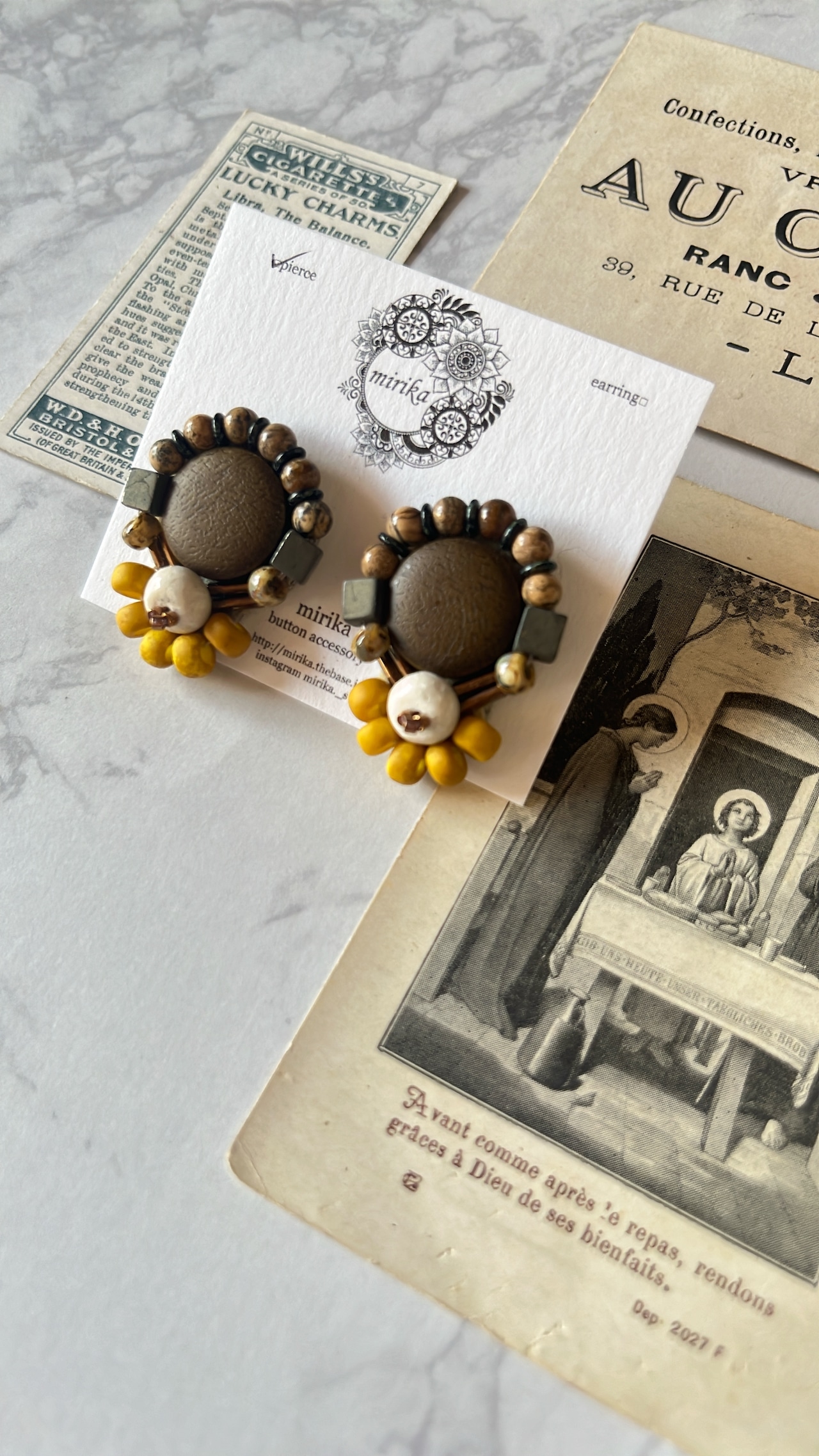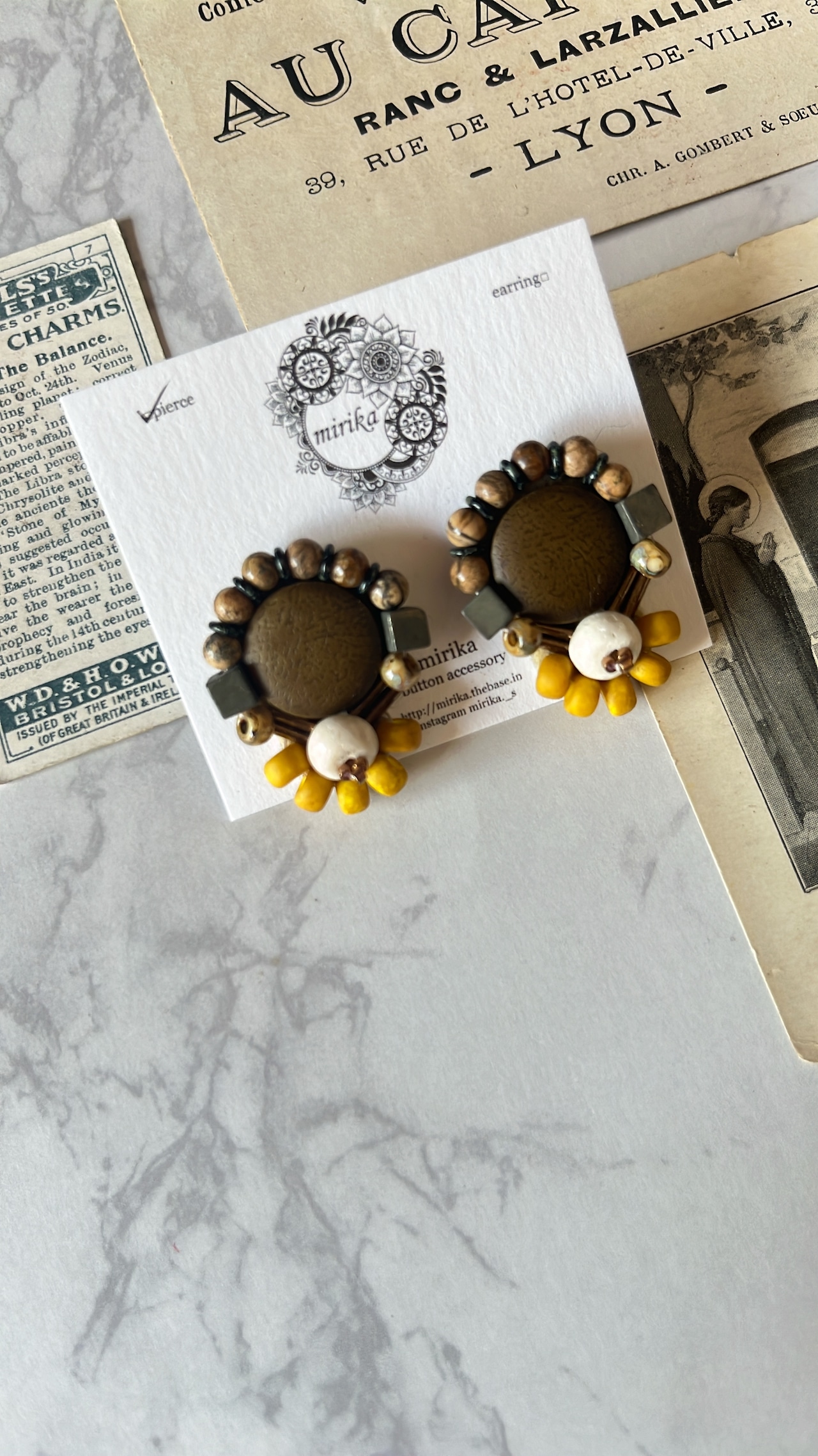 レザー調のカボションを使用したピアス。