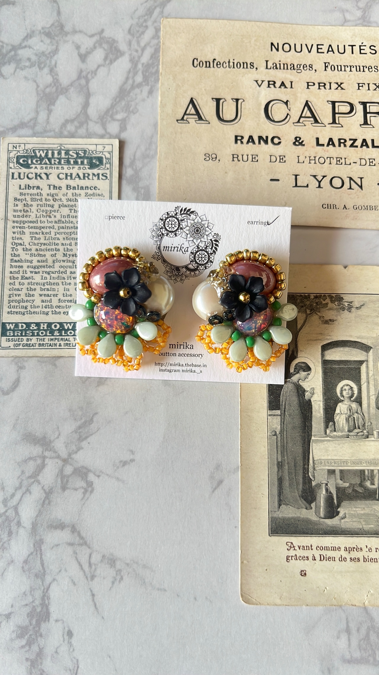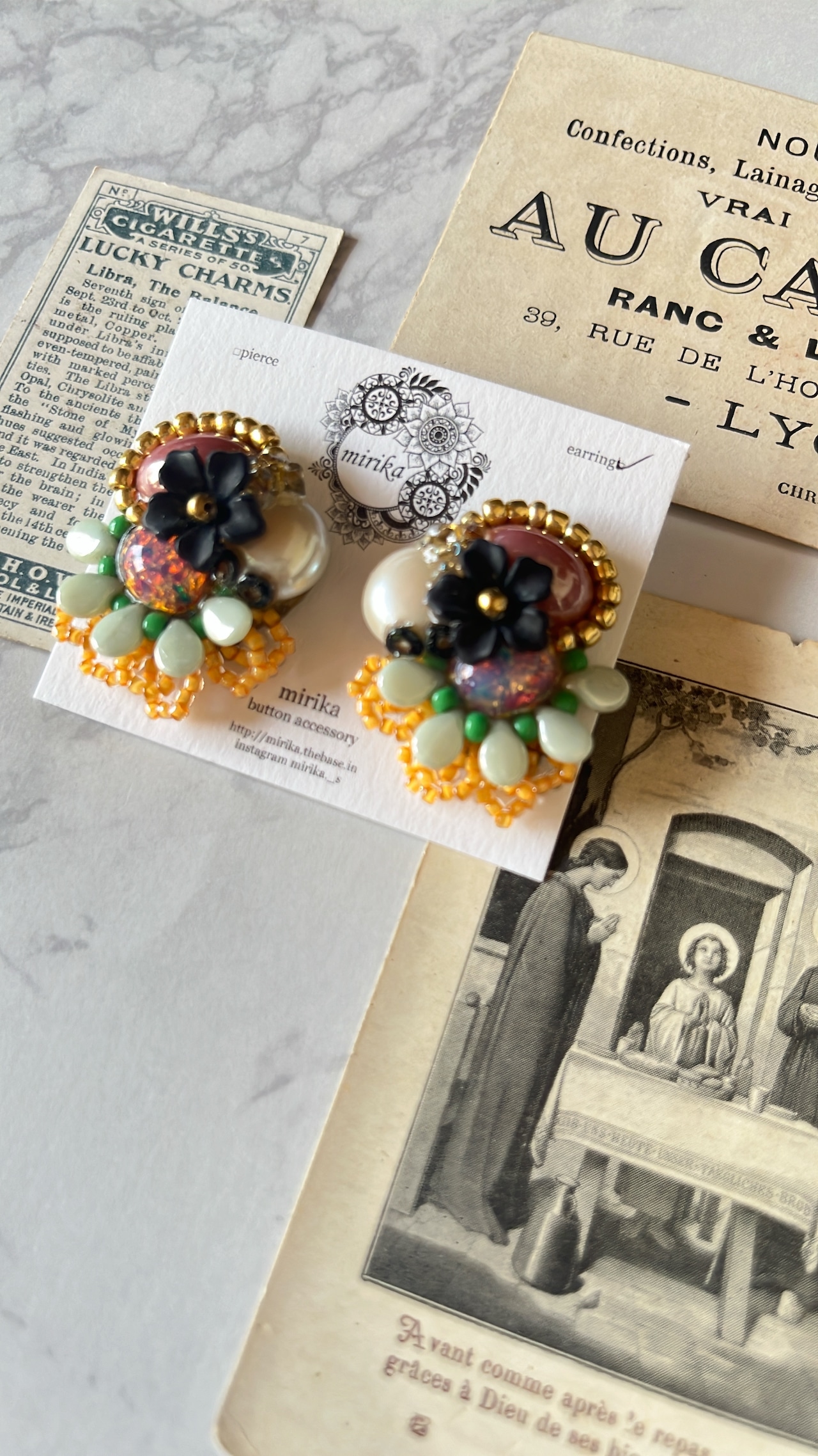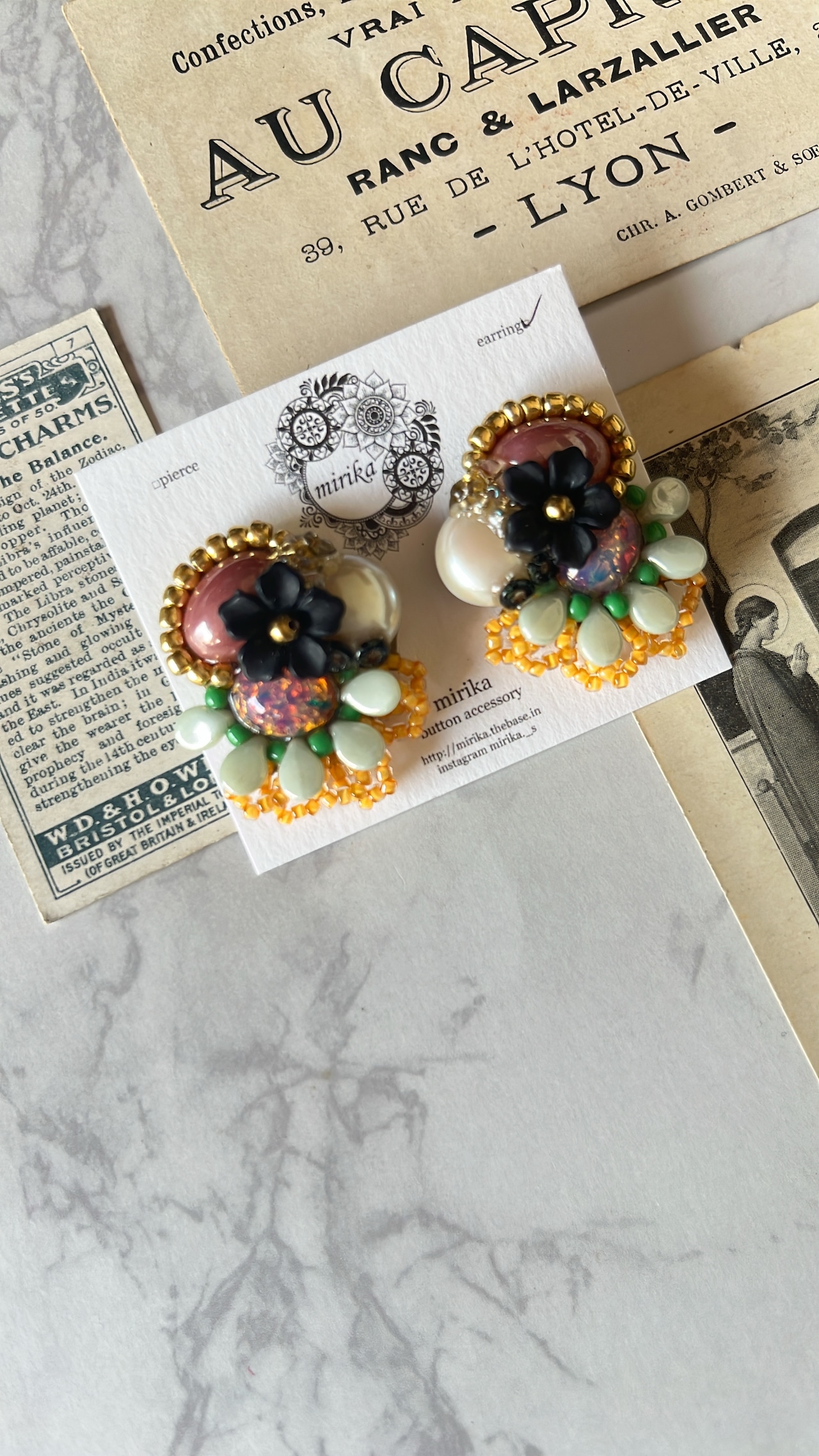 色々なカボションを合わせたイヤリング。