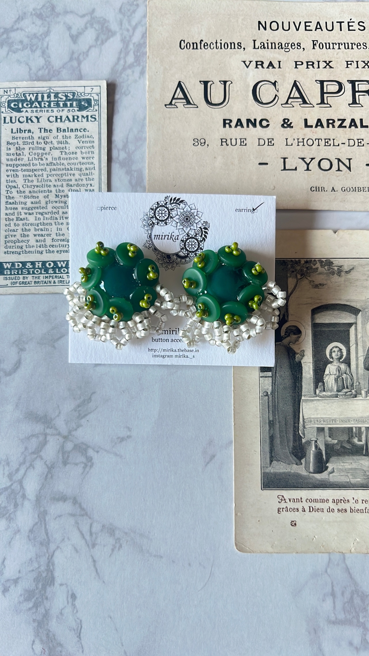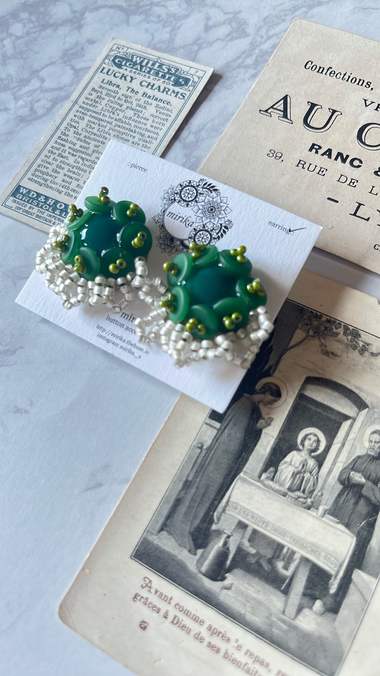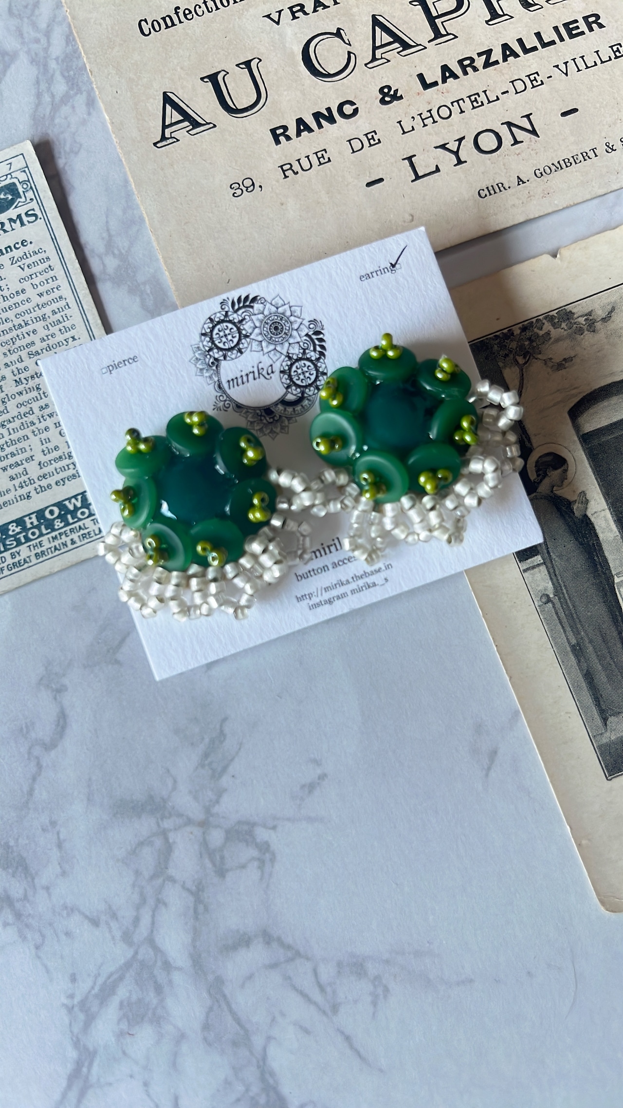 グリーンを基調としたイヤリング。