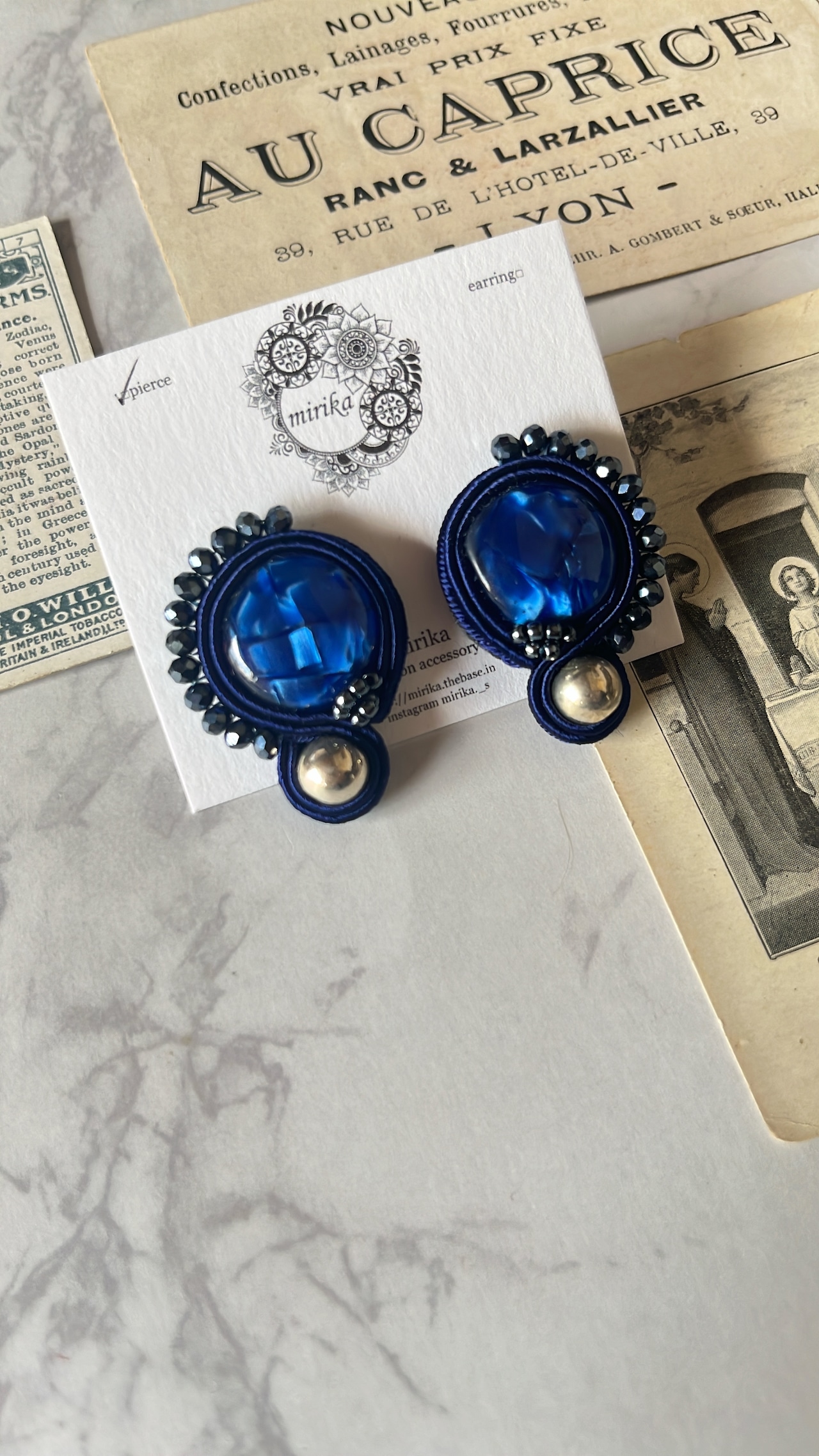 綺麗なブルーのカボションを使用したソウタシエピアス。