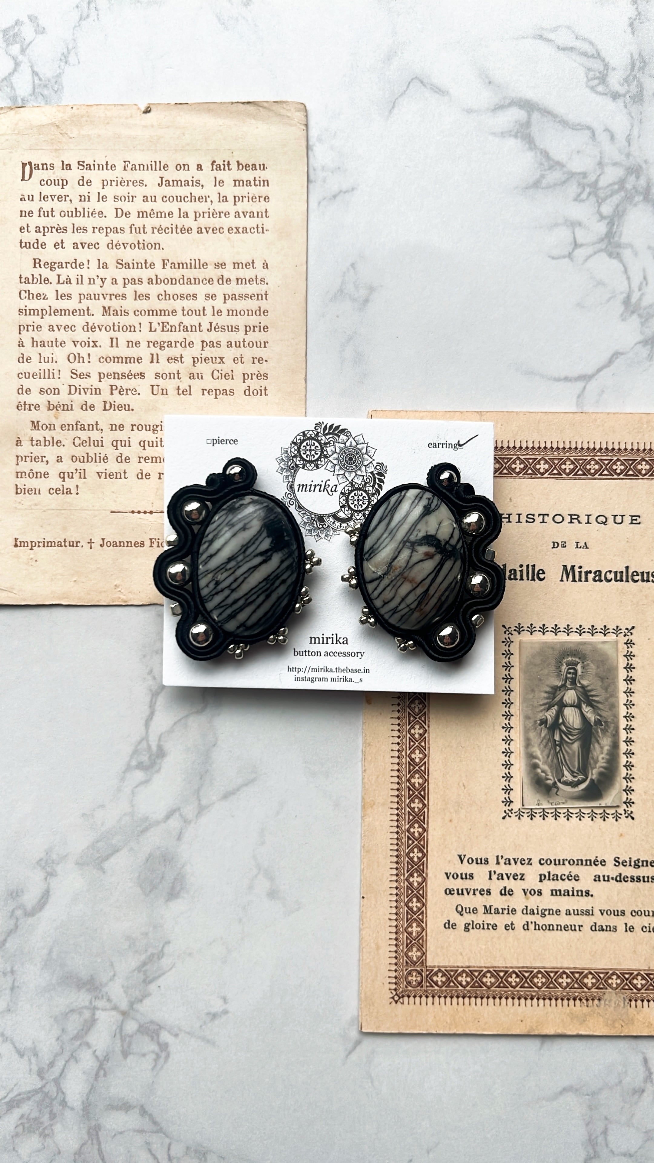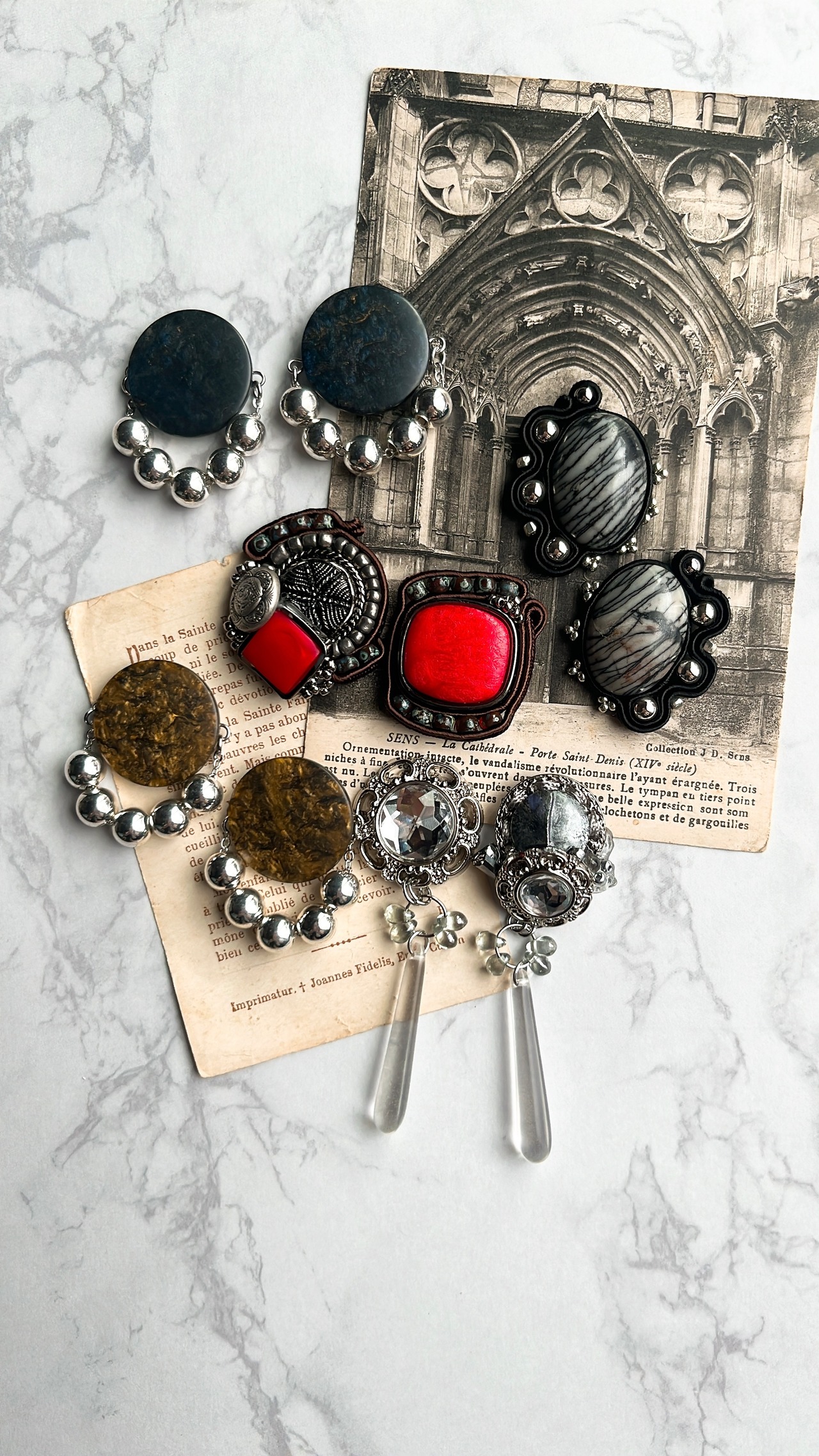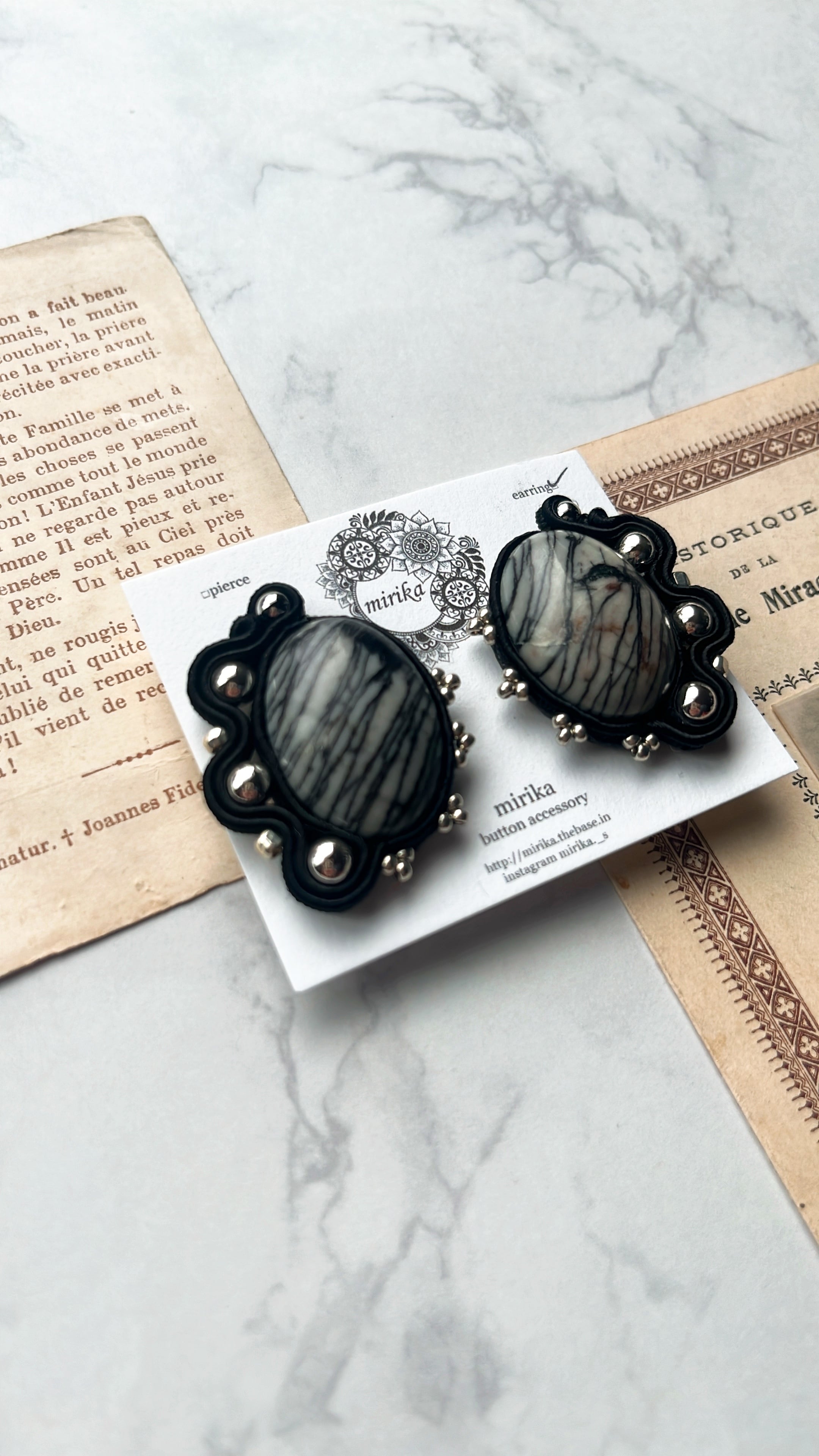 天然石のカボションを使用したイヤリング。