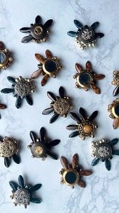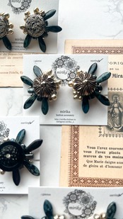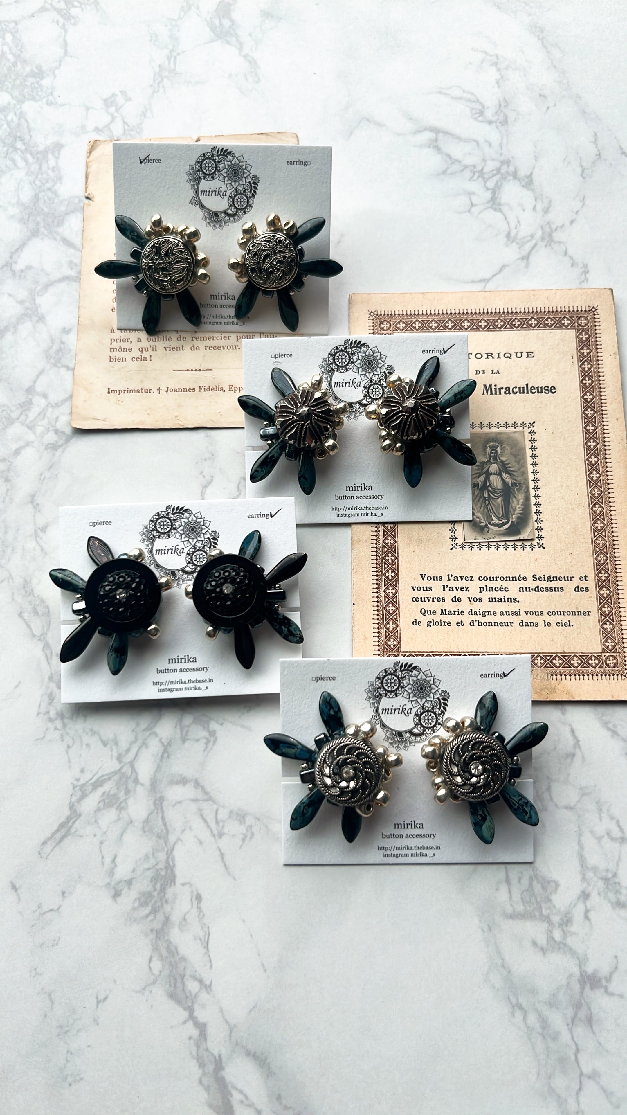 1.5センチの小ぶりめなボタンをビーズで飾り付けたデザイン。
