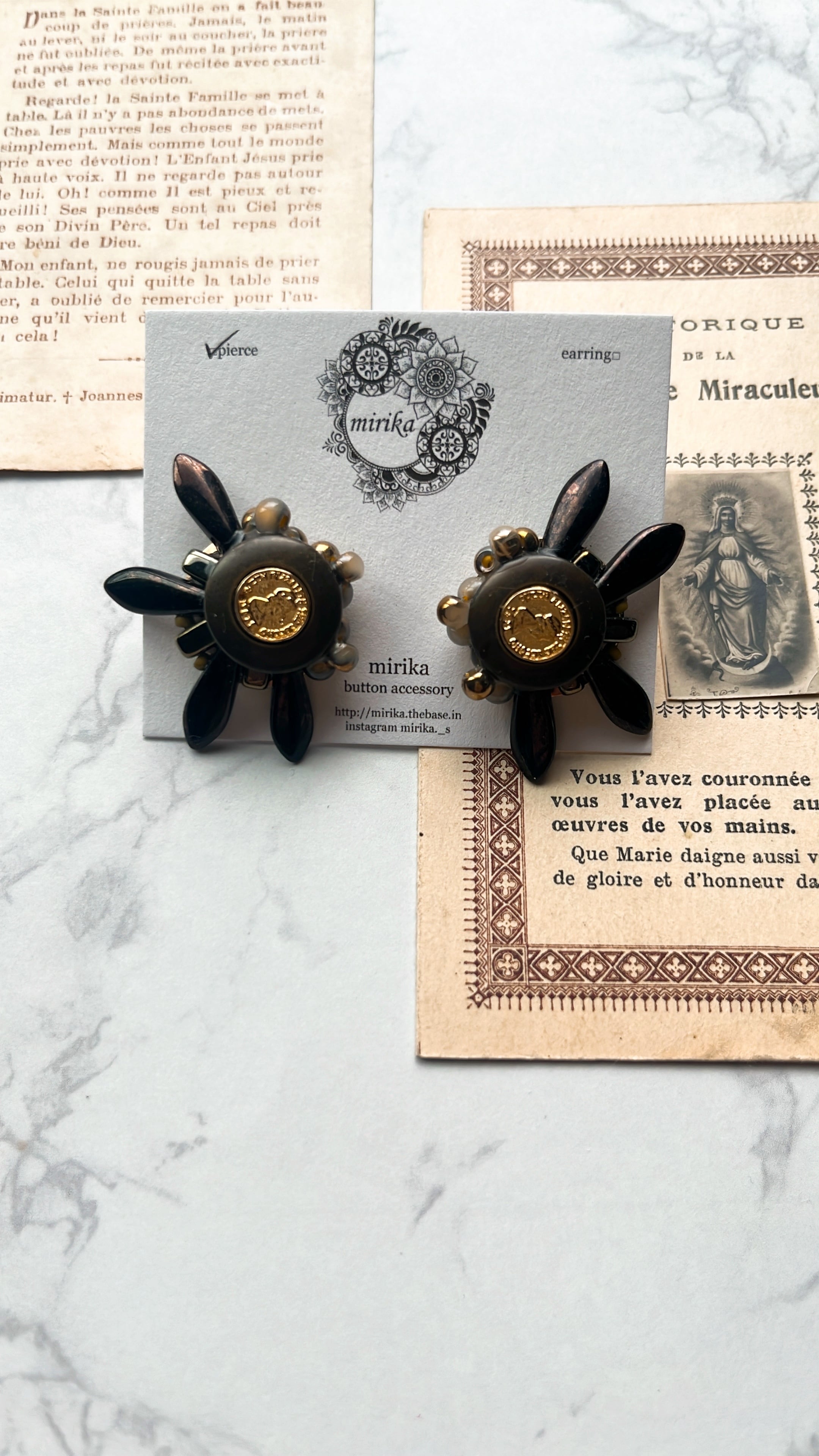 1.5センチの小ぶりめなボタンをビーズで飾り付けたデザイン。
