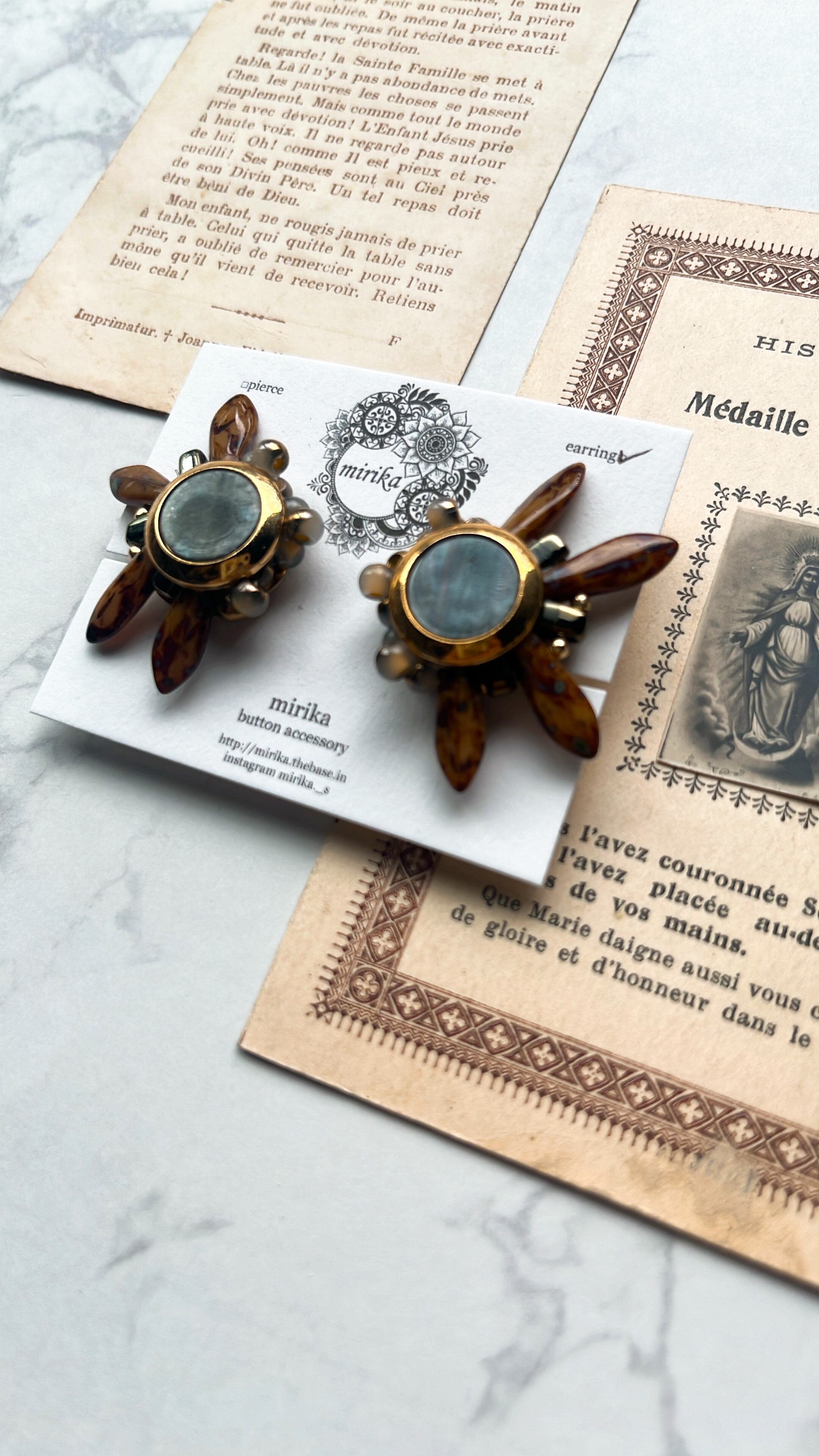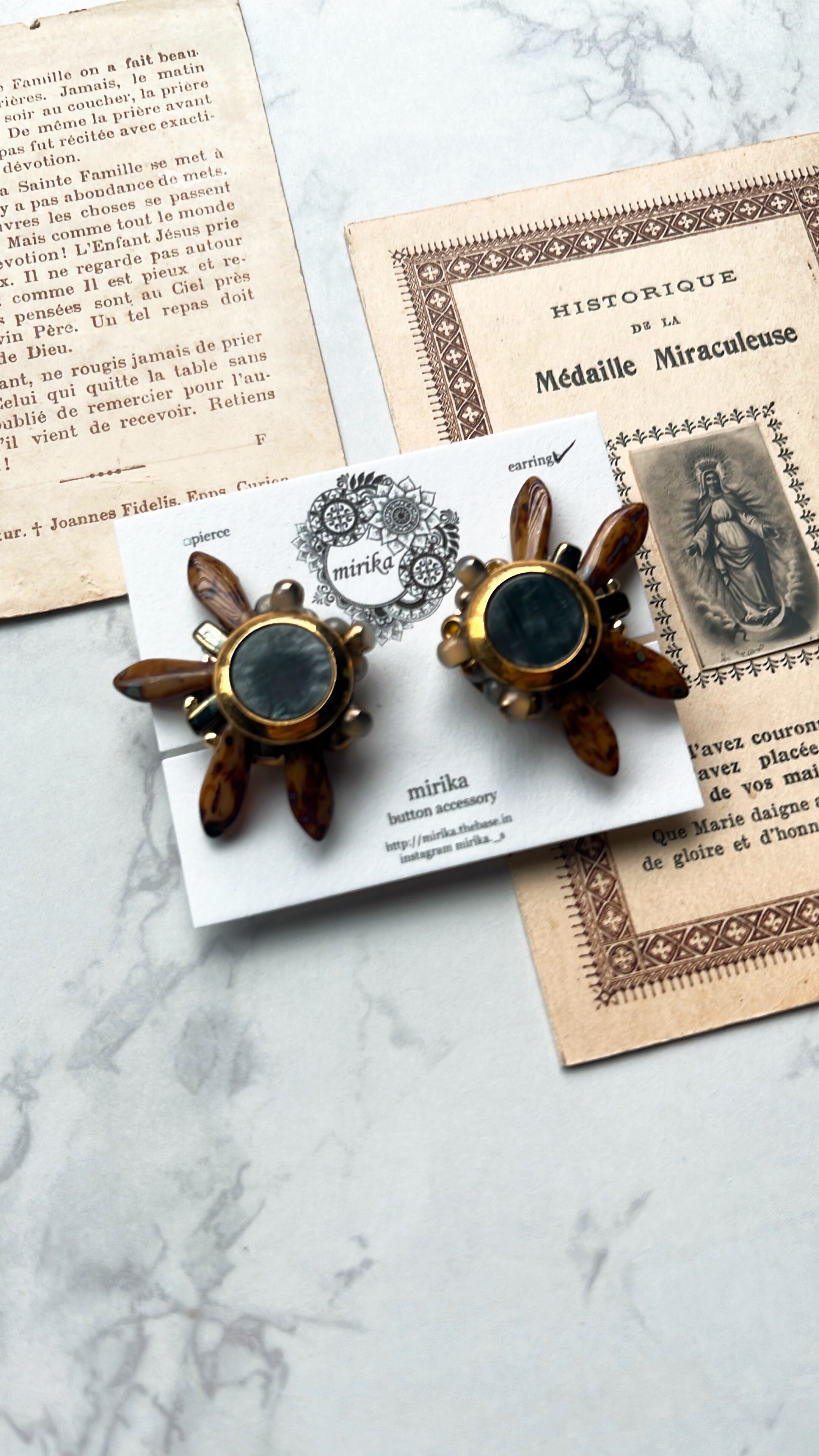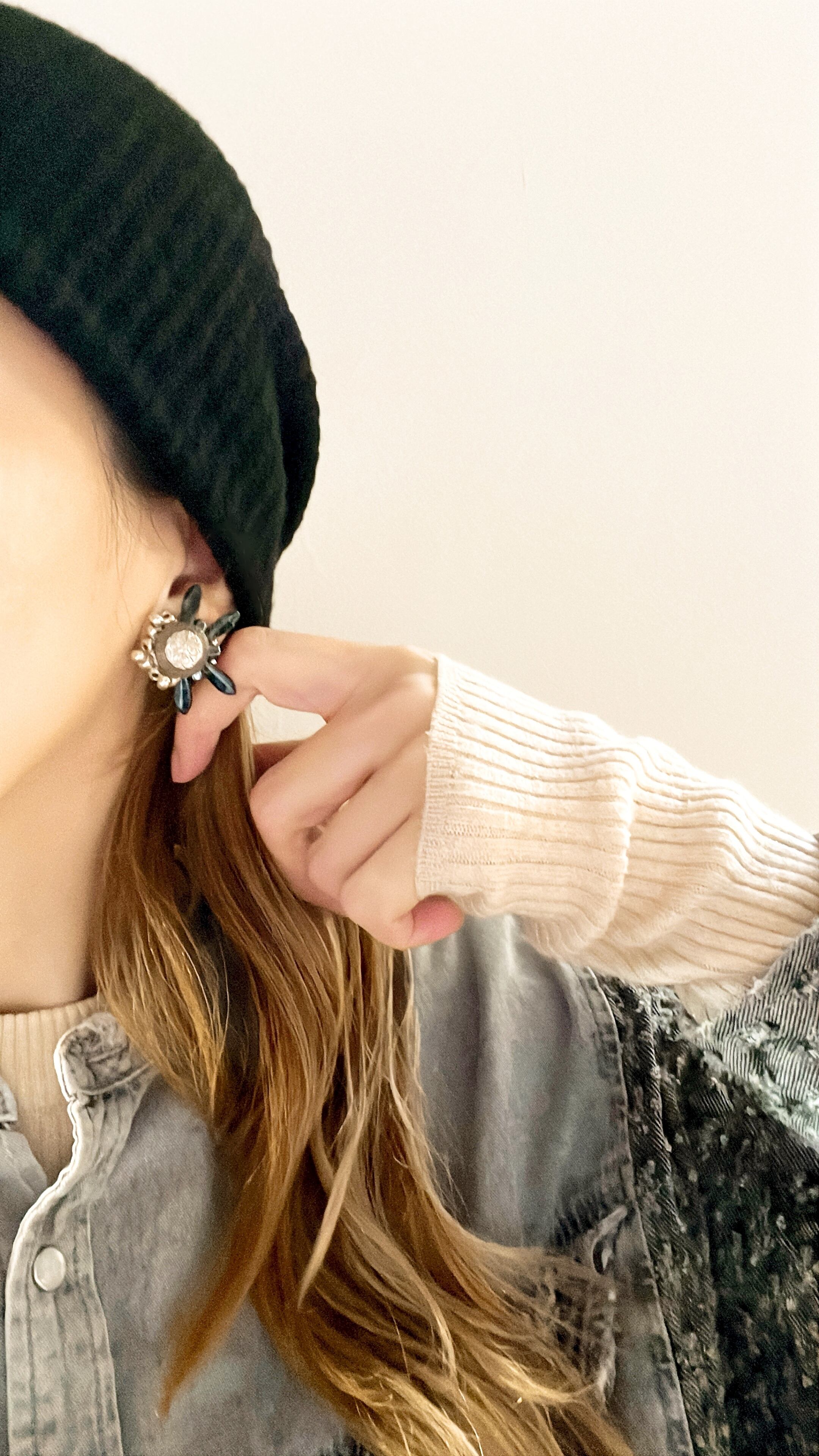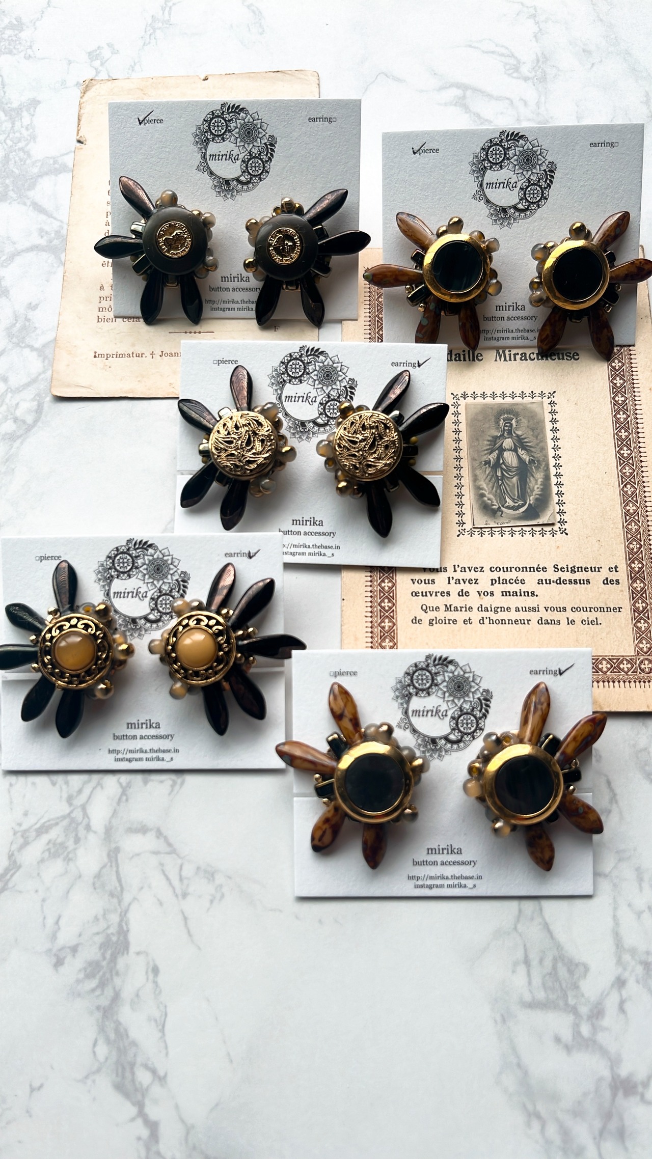 1.5センチの小ぶりめなボタンをビーズで飾り付けたデザイン。