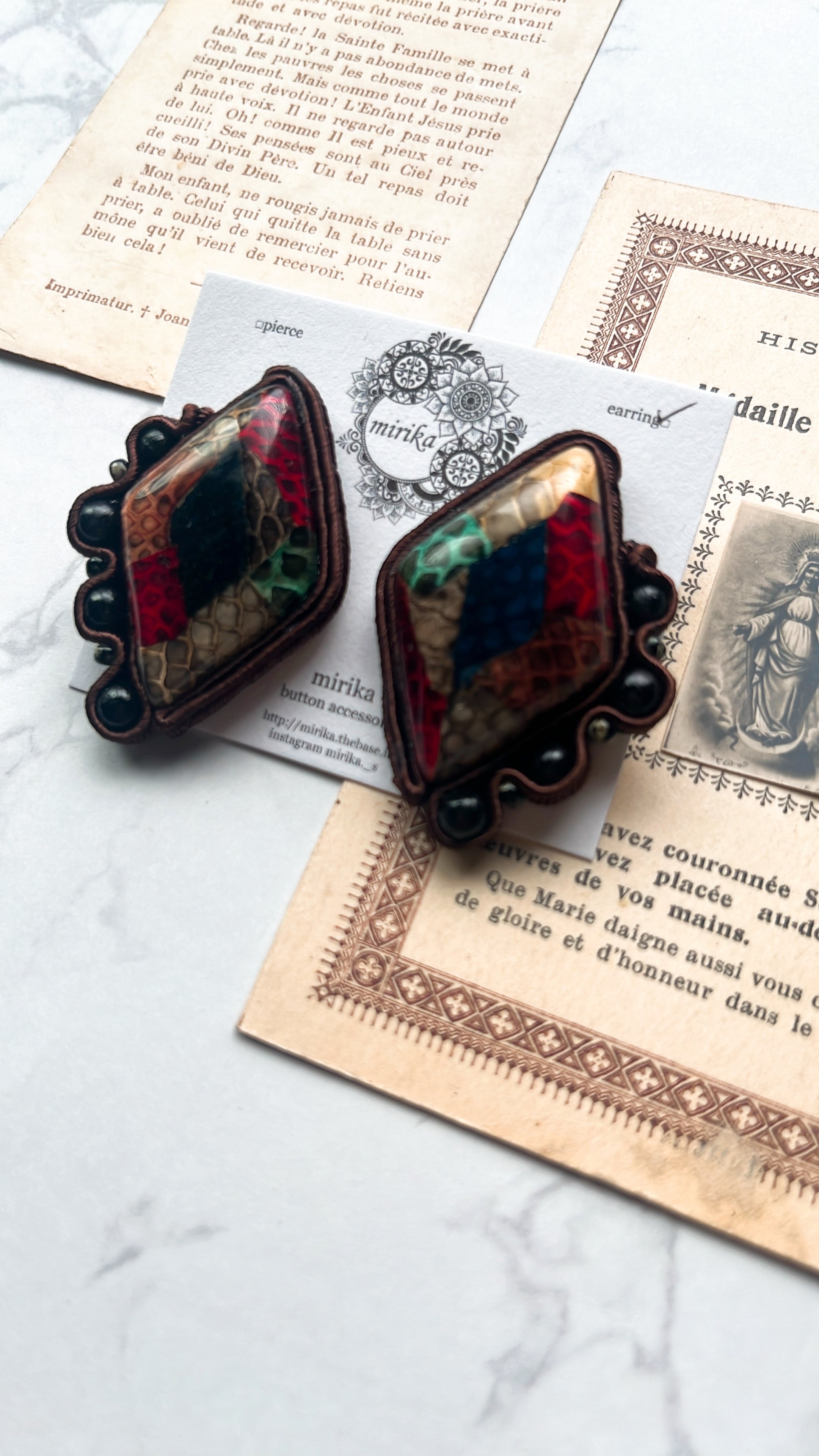 ビンテージのイヤリングをリメイクしたソウタシエ。