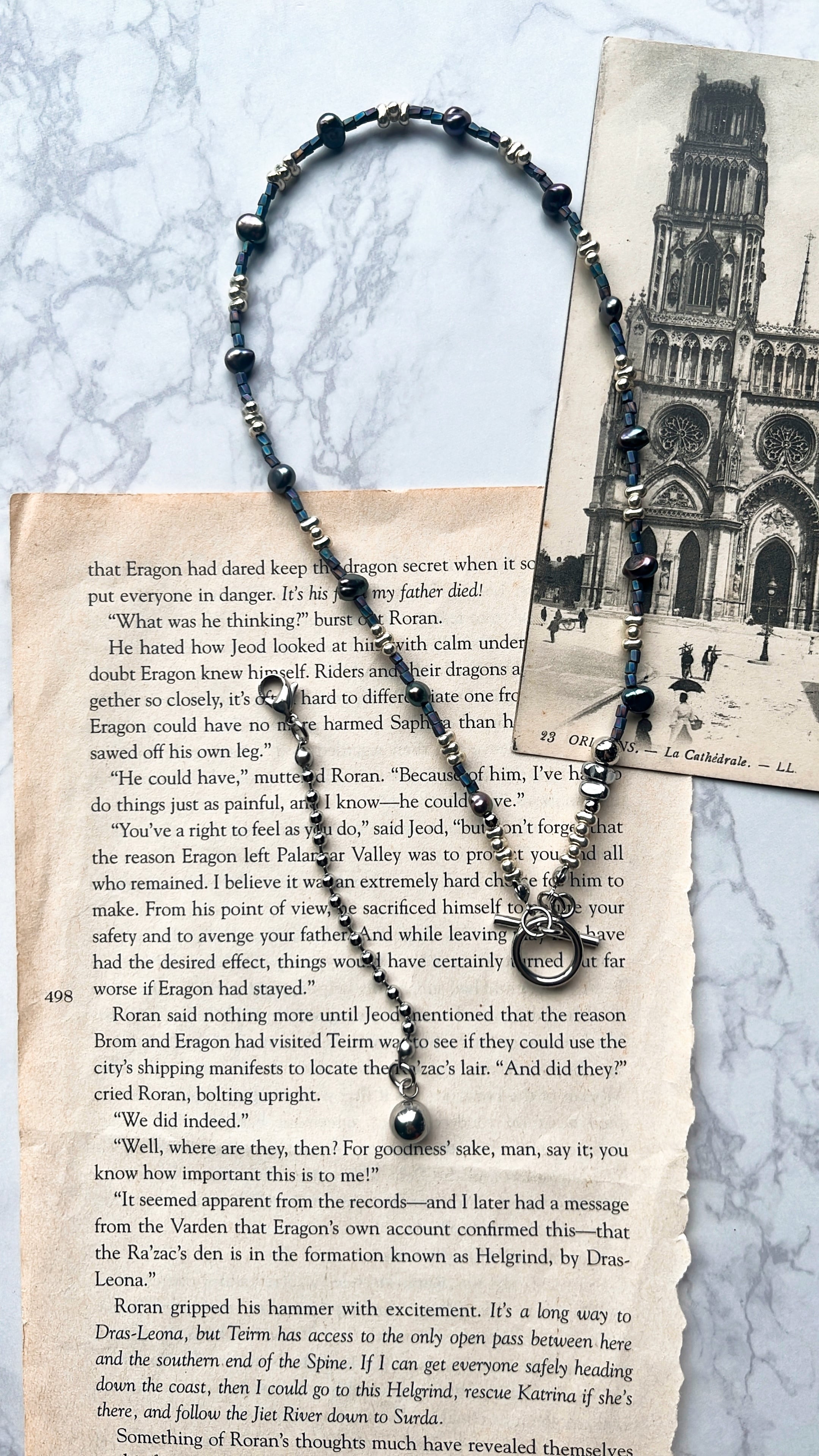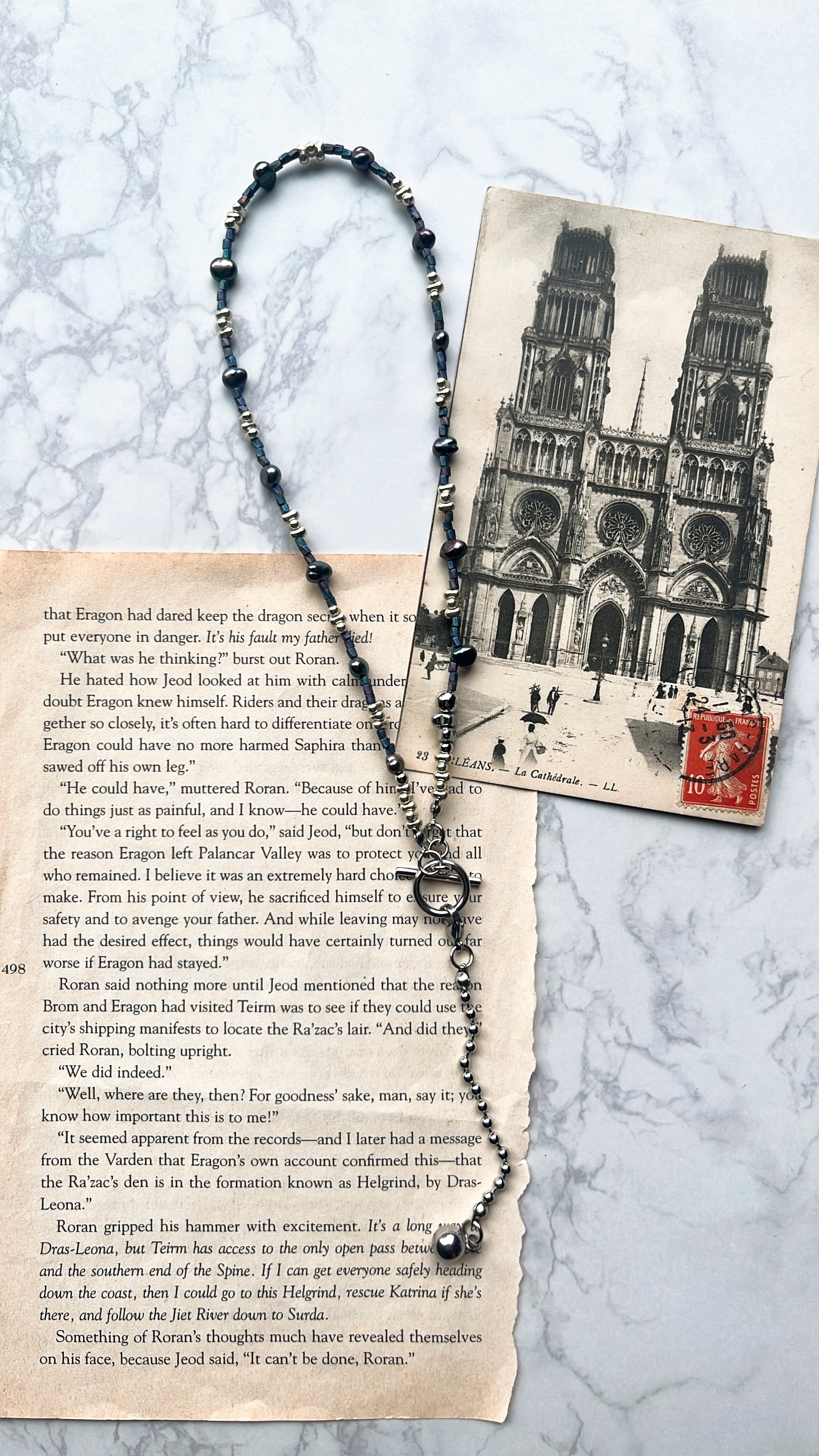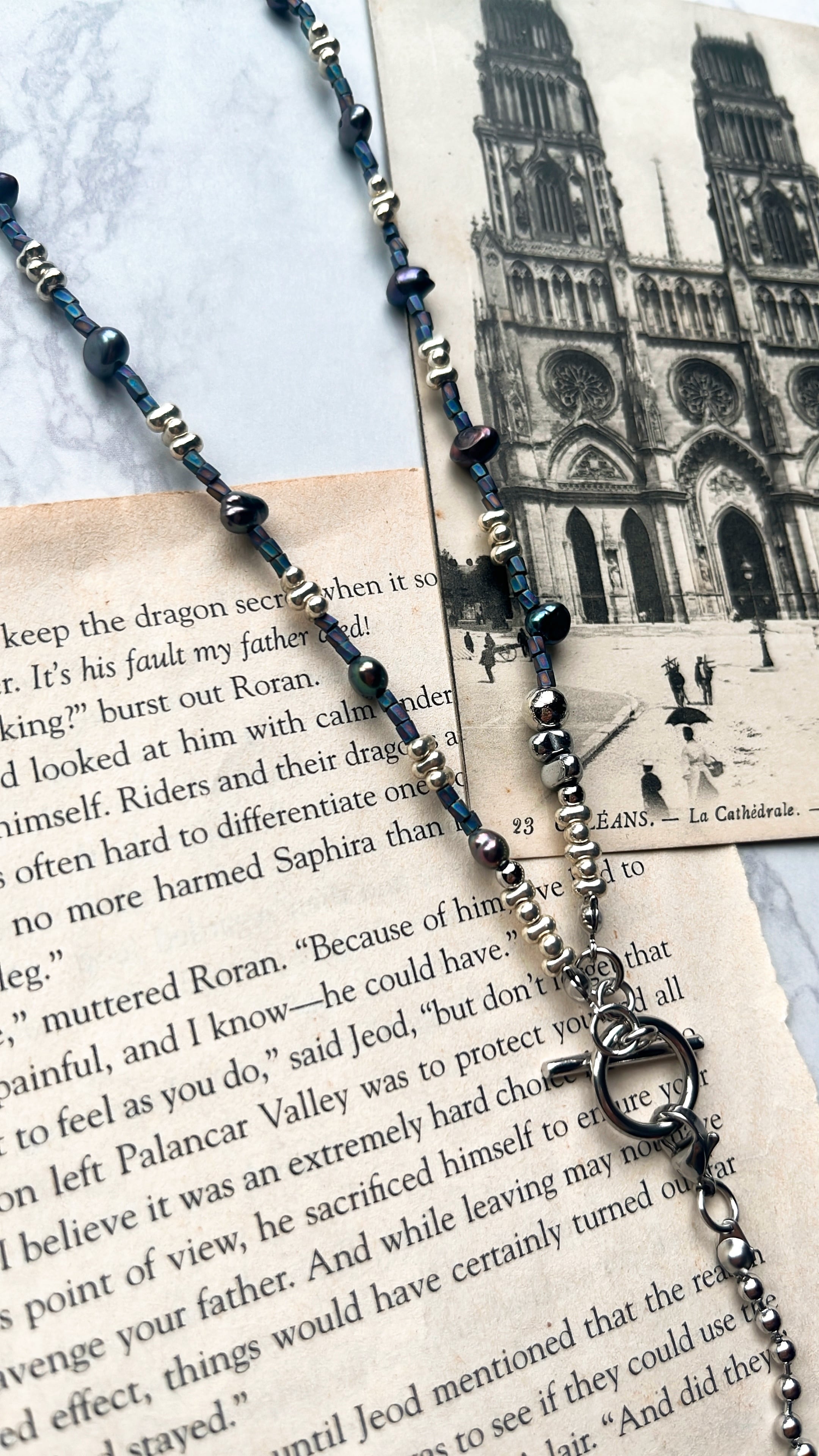 パープル系の淡水パールやビーズを組み合わせたネックレス。