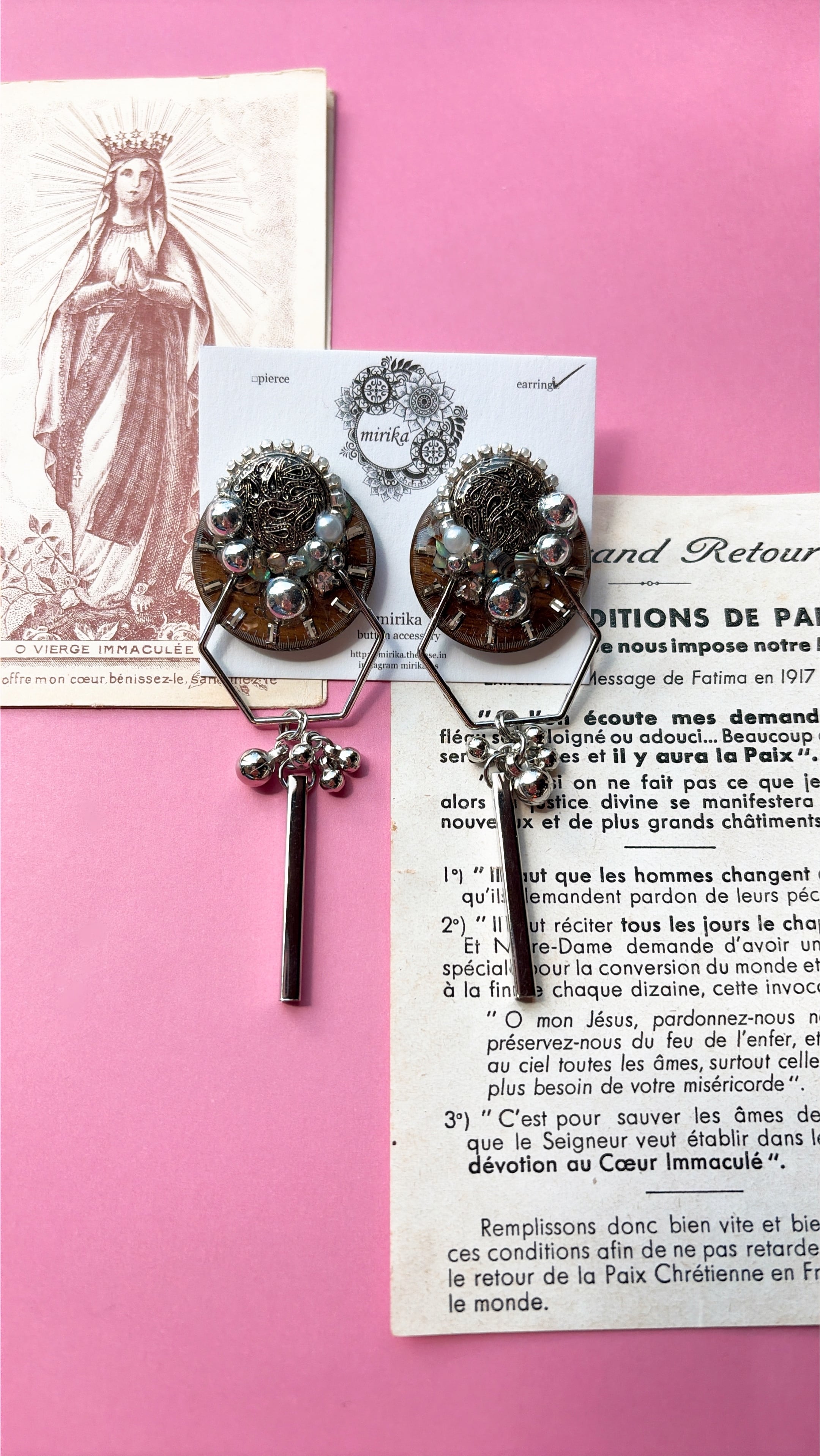 ビンテージの腕時計の文字盤をメインに飾り付けたデザイン。